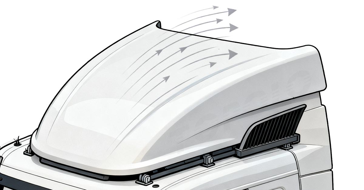 Дефлекторы на крышу кабины грузовика, также называемые фартингами, представляют собой аэродинамическое устройство, устанавливаемое на крышу кабины грузовика или тягача.