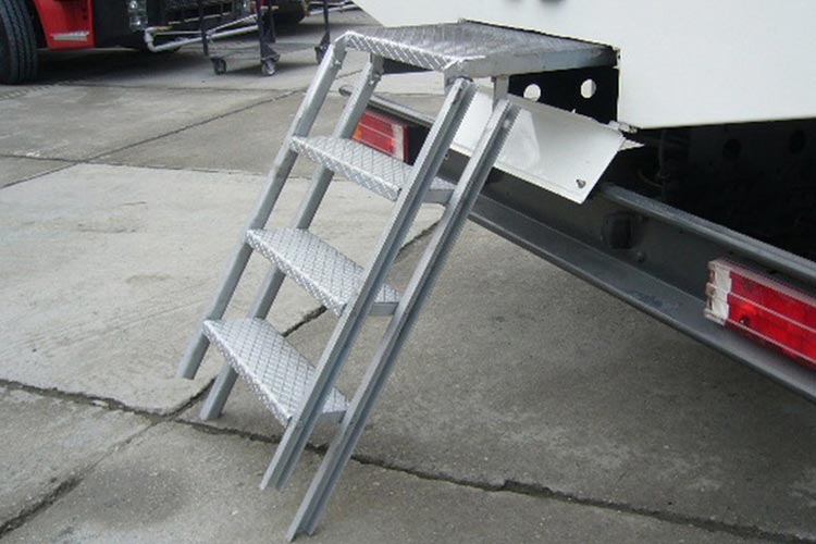 Складная лестница — это вспомогательное погрузочное устройство, устанавливаемое сзади или сбоку грузовика или прицепа, облегчающее посадку и высадку водителей или погрузочно-разгрузочных рабочих. Она особенно подходит для транспортных средств с частыми погрузочно-разгрузочными работами. Складная лестница легко хранится, плотно прилегая к кузову автомобиля в нерабочем состоянии, экономя место и сохраняя опрятный внешний вид.